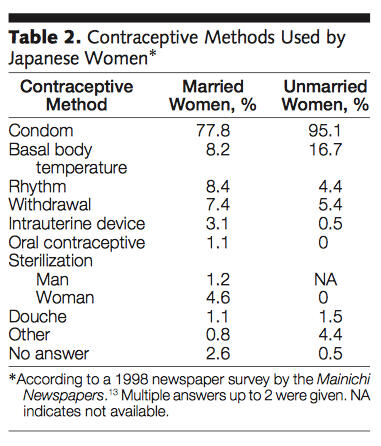 Contraceptive Methods Used by Japanese Women. Photo from the Journal of the American Medical Association (JAMA), pp. 2176, via Mainichi Newspaper.
